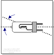 Mit »Brennstellung« wird die zul�ssige Betriebsposition eines Leuchtmittels bezeichnet. So wird unter anderem sichergestellt, daß das Leuchtmittel entsprechend gekühlt wird. Entscheidend ist auch die Wirkung der Schwerkraft auf den Glühfaden oder das brennende Plasma zwischen den Elektroden bei Lichtbogenlampen.