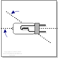 Mit »Brennstellung« wird die zul�ssige Betriebsposition eines Leuchtmittels bezeichnet. So wird unter anderem sichergestellt, daß das Leuchtmittel entsprechend gekühlt wird. Entscheidend ist auch die Wirkung der Schwerkraft auf den Glühfaden oder das brennende Plasma zwischen den Elektroden bei Lichtbogenlampen.